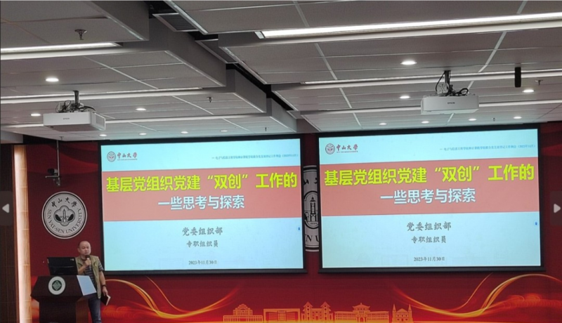 校党委组织部专职组织员黄海老师结合参加2023年全国和广东省高校组织员示范培训班的学习心得,分享自己对基层党组织党建“双创”工作思考。他指出,要以“双创”工作为抓手,紧紧抓住党支部这个基本单元,以提升组织力为重点,不断推进党支部标准化、规范化、信息化和品牌化建设。