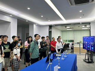 师生党员首先参观中国联通5G创新中心展厅以及5G终端研究及测试区。通过广东联通首席创新官潘桂新总经理、网络产品创新中心高级总监罗东宏、总监叶晓斌、李文彬等人的详细讲解,师生党员对中国联通5G创新实验室的定位、技术创新思路、自研创新产品等相关技术内容有了更加深入的了解,特别是5.5G关键技术、RedCap推进策略及进展等前沿技术,以及5G智慧海洋、5G+工业互联网、5G随行专网等前沿应用。