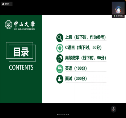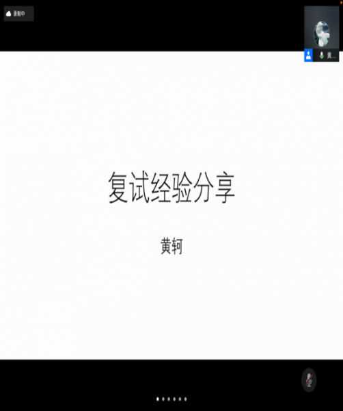 本次分享会共邀请了4位在往届考研复试中表现优异的研究生参加,他们从考前准备、复试流程、心态调整、面试礼仪等各个方面作了经验分享,并给出相应建议。
