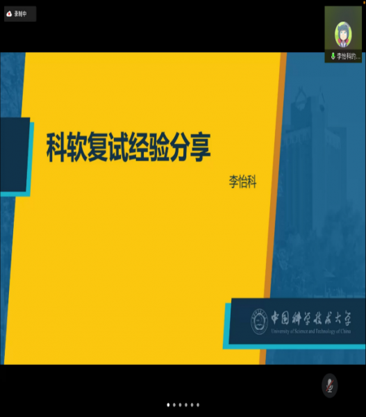 中国科学院大学2021级研究生黄轲介绍了中科院软件研究所的复试流程,分享了自己的备考经验,并就相关注意事项给出了建议。中国科学技术大学2021级研究生李怡科分享了目前的研究生培养模式和复试流程,提醒师弟师妹提前了解感兴趣的研究方向和考试注意事项。