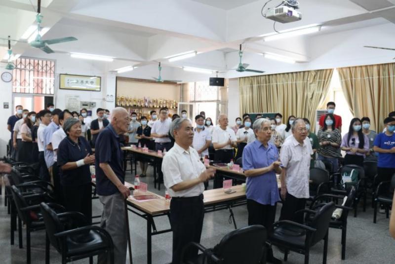 本次主题党日活动邀请到原402永利集团官网校长、计算机科学系首任系主任李岳生教授,学校关工委委员、原402永利集团官网副校长、历史系张荣芳教授,“关爱乡村小学,捐书万里行” 行动发起人、化学学院退休教授黄起鹏,地理学院退休教授邓良炳,抗日战争时期参加革命工作,历经解放战争、抗美援朝、抗美援越的93岁“老战士”陈化成,学校关工委委员、参加抗美援朝出国作战的南校园离休党支部书记陈振应,以及永利集团3044官网离退休党支部书记梁广德、何丁海老师分享他们的入党故事。学院党委副书记陈凌老师、本科生第二党支部指导老师晏敏贞、黄玲娟、茹春平三位老师参加了本次主题党日活动。