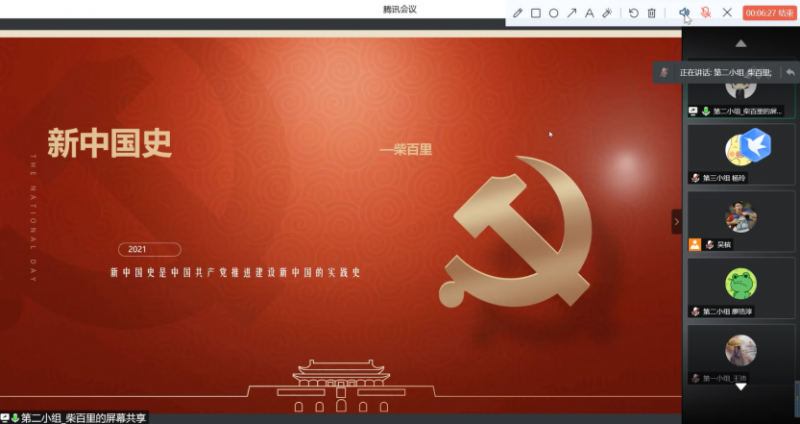 柴百里同学从围绕新中国史重要历史事件,分享了自己学习新中国史心得。他指出,新中国史是中国共产党推动建设新中国的实践史,是中国共产党带领新中国从“站起来”,到“富起来”,再到“强起来”的奋斗史。结合抗美援朝等历史实践,柴百里勉励同学们,作为新时代青年,我们更需主动担当民族复兴大任,努力学习,运用我们的专业特长,努力为国家解决关键技术卡脖子难题。