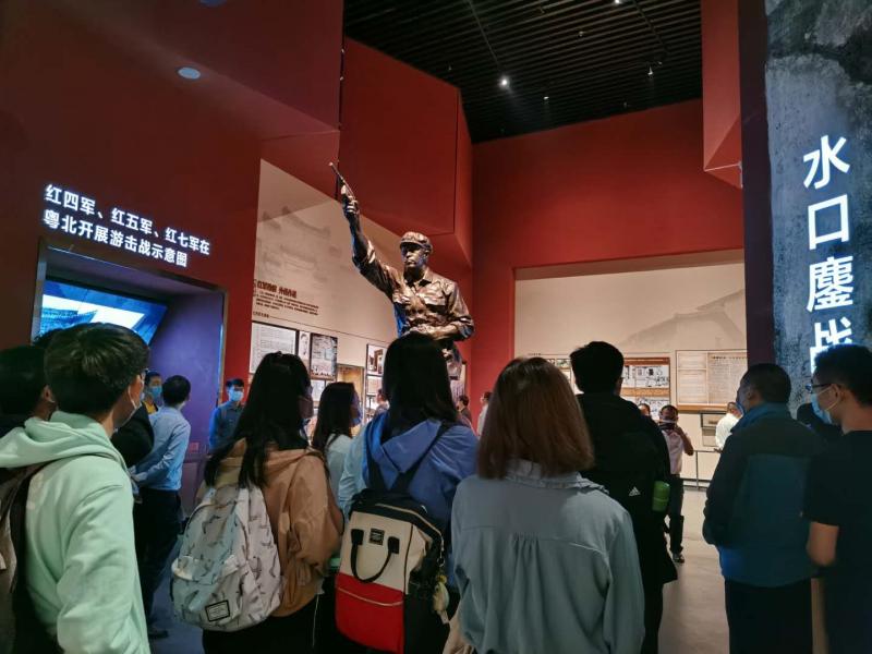 本次培训主要以专题辅导报告、现场教学和小组讨论等方式进行。11月13日下午,同学们聆听了韶关市委党校赵倩倩老师主讲的“全面准确把握习近平新时代中国特色社会主义思想”专题报告,围绕《习近平谈治国理政》第三卷中提到的新时代治国理念进行交流研讨。11月14日,同学们参观了红军长征粤北纪念馆,缅怀革命先烈,了解红军艰苦曲折的突围历程,感悟伟大的长征精神;同学们还参观了彭华纪念馆,并向彭华教授雕像鞠躬致敬;在南雄梅岭,同学们体会到了共产党人对于革命必胜的坚定决心和无畏气魄,在现场教学老师的领读下朗诵了陈毅同志当年在梅岭写下的光辉诗篇——《梅岭三章》。11月15日,同学们参观了中共广东省委、中共粤北省委机关旧址,见证党领导广东人民革命斗争的历史,学习李大林、张文彬等同志坚贞不屈,爱党爱国爱人民的精神品质。