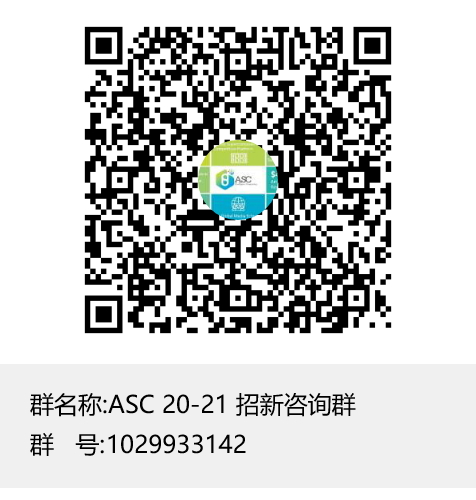 报名成功后,将会有专人拉你进入ASC21选拔培训群,24h内若无人联系可咨询任意一位咨询群管理员。