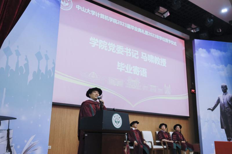 学院党委书记马啸教授寄语毕业生。他向2023届毕业生表示热烈祝贺,向辛勤耕耘的老师们表示感谢,希望毕业生有理想、敢担当、能吃苦、肯奋斗,与时代同步伐、与人民共命运,为实现中华民族伟大复兴贡献力量。