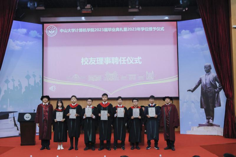 颁授学位完毕,由学院党委书记马啸教授、学院院长为 2023届校友年级理事颁发聘书并合影留念。