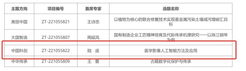 近日,教育部学位与研究生教育发展中心公布2022年主题案例征集立项结果,我院陆遥教授牵头申报的“中国科创”主题案例项目《医学影像人工智能方法及应用》获得立项。据悉,我校共有4个案例获得立项。