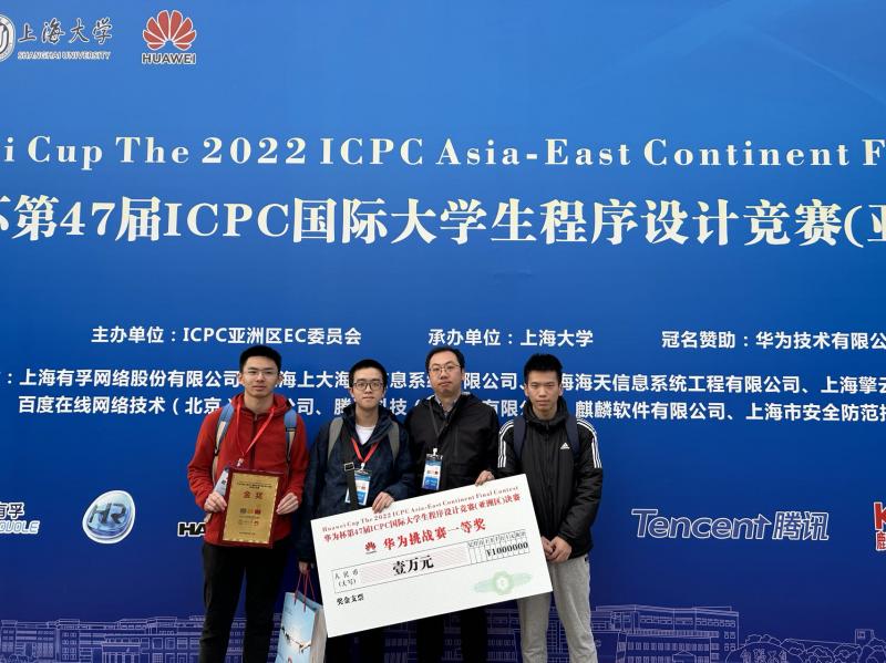近日,华为杯第47届ICPC国际大学生程序设计竞赛(亚洲区)决赛在上海大学举办。402永利集团官网永利集团3044官网学生欧梓洋、吴景图和古鸣浩组成的“402永利集团官网-破晓”队荣获金奖,其中2022级本科生古鸣浩还获得了这次比赛中设置的“华为挑战赛”一等奖。