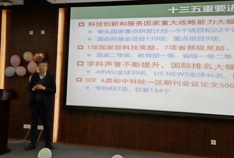 2022年是党的二十大胜利召开之年,也是学院高质量发展、“十四五”规划深入实施的关键之年。学院在学科建设、人才培养、科学研究、师资队伍建设、学生工作等方面硕果累累。院长结合“十四五”学院发展主要任务与目标以及面临的挑战和机遇,对学院2023年工作进行了展望。院长指出,要进一步确定发展目标,团结一致、协同合作,筑牢学科基础、聚焦战略前沿,推进产学研用。院长强调,希望全院教职员工在谋划好新一年工作的基础上,勇于竞争、巧于竞争,主动宣传,大力引进高层次人才和团队,为拔尖创新人才的培养和计算机学科高质量内涵式发展贡献力量。