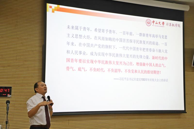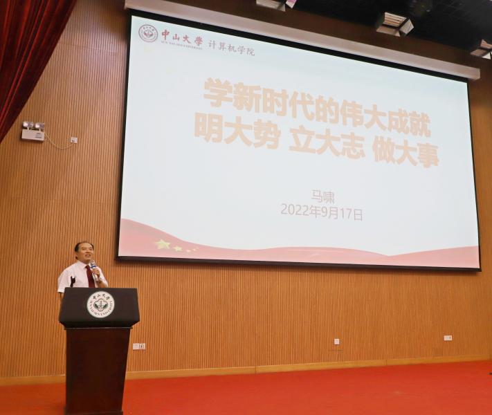 学院党委书记马啸教授首先为本科新生讲授“思政第一课”。马书记指出,新时代的中大青年,要热爱祖国,坚定“四个自信”;要树立远大理想,肩负起时代使命;要砥砺奋斗,做有理想、有追求、有担当、有作为、有品质、有修养的大学生。