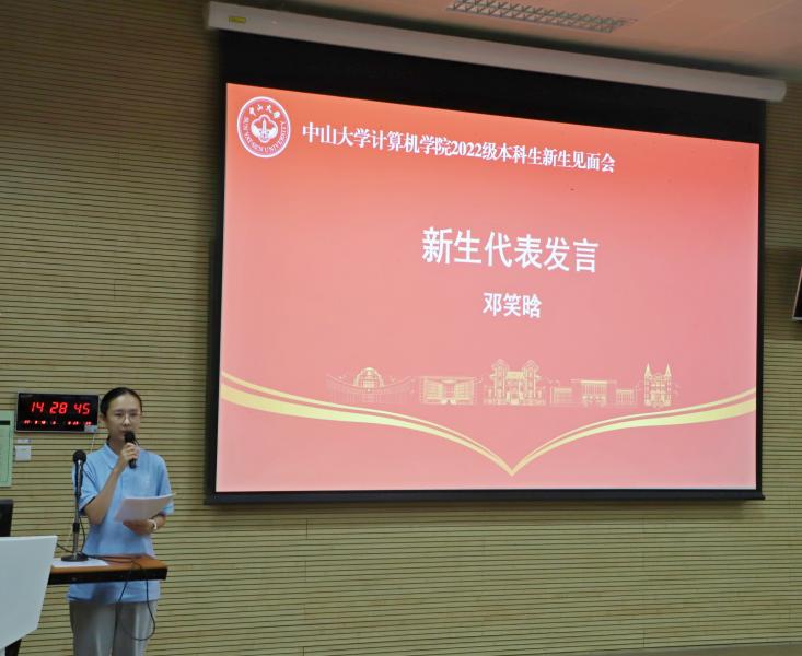 在校生代表、2020级本科生吴桐同学、新生代表邓笑晗同学分别发言。吴桐同学分享了自己在中大求学两年期间的生活点滴,希望师弟师妹们保持进取之心,成为德才兼备、追求卓越的合格中大人。邓笑晗同学分享了入学以来的心路历程和对接下来学习生活的憧憬,表示将努力在中大这个兼容并蓄的平台上认真学习,刻苦钻研,立定志向,启航人生。