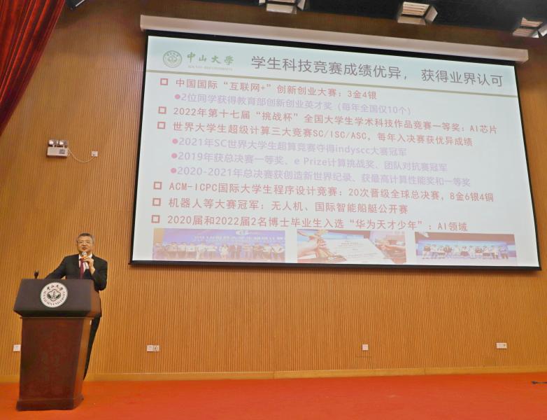 学院院长在会上为新生们带来了一堂生动的计算机科学启蒙课,以“计算机能干什么、计算机研究什么”这两个问题引导新生们结合即将开始的大学生活,对当下万物互联、科技力量无所不在的社会加以观察、进行思考。院长还介绍了学院建设和发展的情况,以及人才培养和科研方面取得的成绩。院长勉励同学们在本科期间就立要大志、做科研,勇攀科技高峰,为国家攻克“卡脖子”关键核心技术贡献自己的力量。