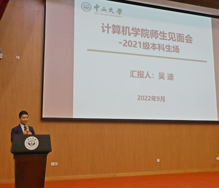 分管本科教学工作的副院长吴迪教授介绍了大二至大四的课程设置、学分转换原则,以及大学生创新创业实践项目、学科竞赛、教师科研项目和推免生遴选原则。吴院长鼓励同学们积极报名参加学院科研导师项目,尽快与导师建立联系。