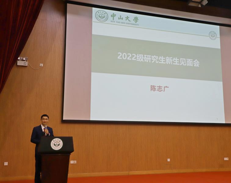 院长助理陈志广副教授作为教师代表向22级研究生介绍了研究生做科研的基本情况,勉励同学们要一步一个脚印地做科研。
