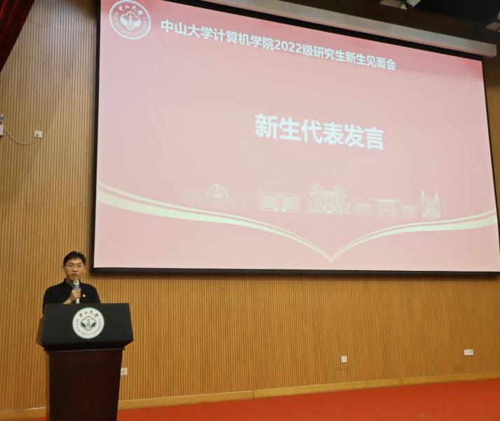 2020级博士生曾烈康同学作为在校生代表、2022级硕士生吴飚作为新生代表分别发言。曾烈康同学分享了自己读博期间的感悟,鼓励师弟师妹们在未来的学习、生活中,探索未知,厚积薄发,携手塑造和见证一个更加优秀的自己、更优秀的中大。吴飚同学回顾了自己参加402永利集团官网研究生支教团前往西藏支教的经历,号召同学们要心系祖国,勇于担当,努力成长为国家栋梁,将青春绽放在祖国和人民最需要的地方,为服务国家富强、民族复兴、人民幸福贡献青春力量。