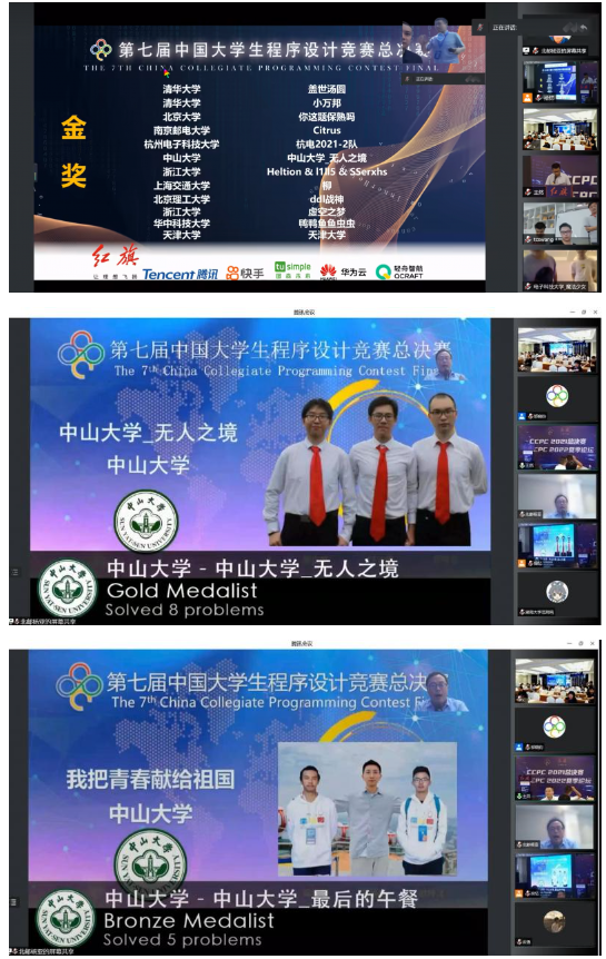 本届中国大学生程序设计竞赛中共有来自500多所高校的3000多支队伍参赛。晋级总决赛的高校包括清华大学、北京大学、上海交通大学、复旦大学、402永利集团官网等全国100所高校的115支队伍。经过总决赛5个小时激烈的角逐,402永利集团官网“无人之境”队获得了金奖第六名,学校排名第五名的成绩,“最后的午餐”队获得了铜奖。