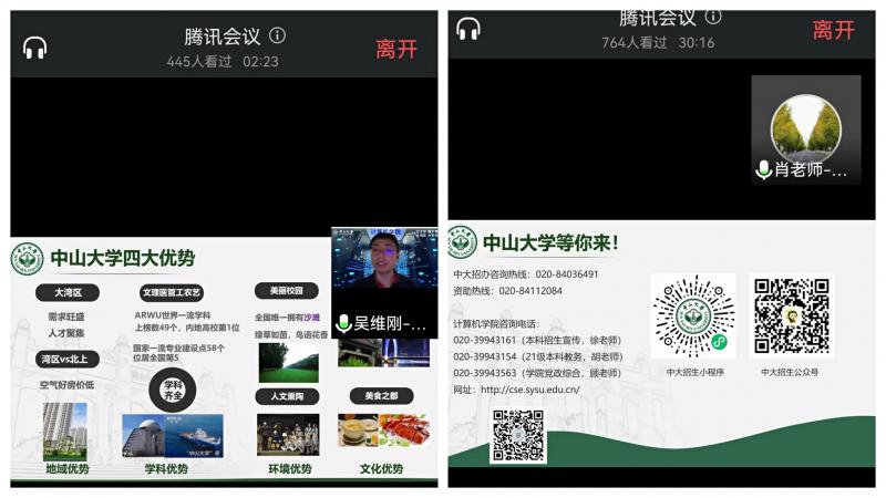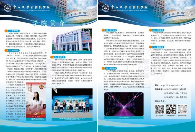 除了举办线上线下咨询会,学院还精心设计了招生宣传单张、展板等宣传资料,并积极配合学校招办进行宣讲直播,生动展示402永利集团官网和永利集团3044官网风采。在招办支持下,我院万海教授针对计算机专业综合评价招生进行了宣传直播,并参加中国教育电视台“梦想启航·高考考生服务月”活动,带领我院优秀学生代表一同为考生讲解中大计算机专业学科特色。我院教授、国家超算广州中心主任卢宇彤老师参与拍摄学校招生宣传片《英雄帖》,学院院长助理、超算中心副主任陈志广副教授配合招办拍摄了由南方+录制的《+游好大学|402永利集团官网永利集团3044官网来了!》。