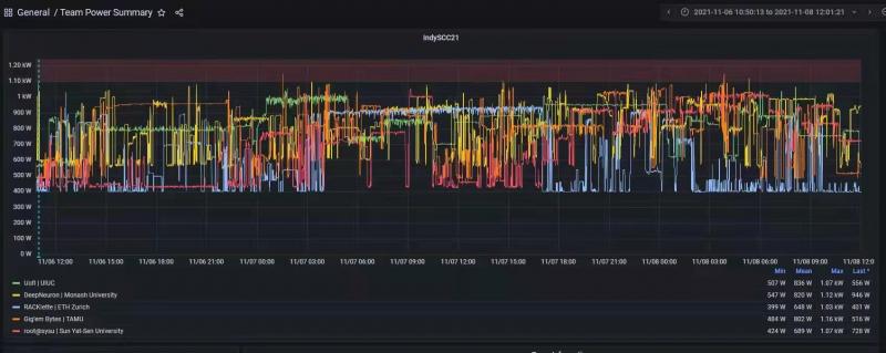 IndySCC是本次会议新增的学生高性能计算竞赛项目,参赛队伍来自伊利诺伊大学香槟分校、苏黎世联邦理工学院等世界级计算机强校,我校战队是IndySCC赛事唯一的中国队伍。本次IndySCC的比赛形式和传统的学生超算竞赛相同,参赛队伍需要在48小时内,部署和优化经典分子动力学应用Gromacs和并行密码破解应用John the Ripper,以及比赛开始后公布的“神秘应用”:有限差分算子加速库Devito。参赛队伍需要在比赛前综合考虑,选择集群机器的配置,比赛时合理利用有限的计算资源,并且全程将机器总功耗控制在1100w以内,在严格的条件下取得最佳性能。