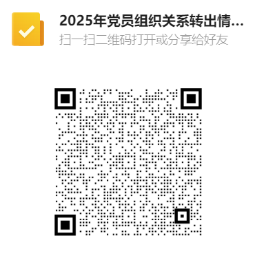 通过链接或二维码填写:2025年党员组织关系转出情况收集  https://doc.weixin.qq.com/forms/AM8AXAcdAA0ARAATQa3ALMxowBlB0TRof?page=1