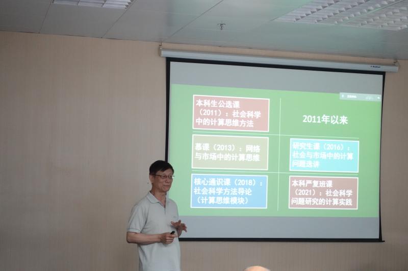 李晓明教授幽默生动地介绍了其建设一门课程的探索及经验,并以“囚徒困境”与“礼让悖论”为例,介绍了课程思政的建设经验。李晓明教授指出,课程方法探索需要结合教育技术实践,综合运用开放工具,以及结合信息与市场关系的学习。
