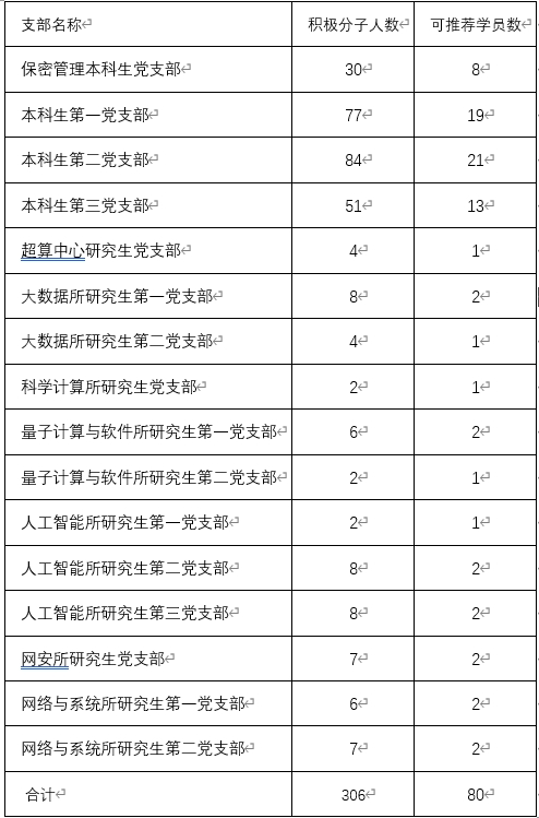 本期培训班学员人数拟定80人,根据全院各学生党支部现有的未结业的积极分子人数的比例,本期培训班各支部可推荐的学员人数如下: