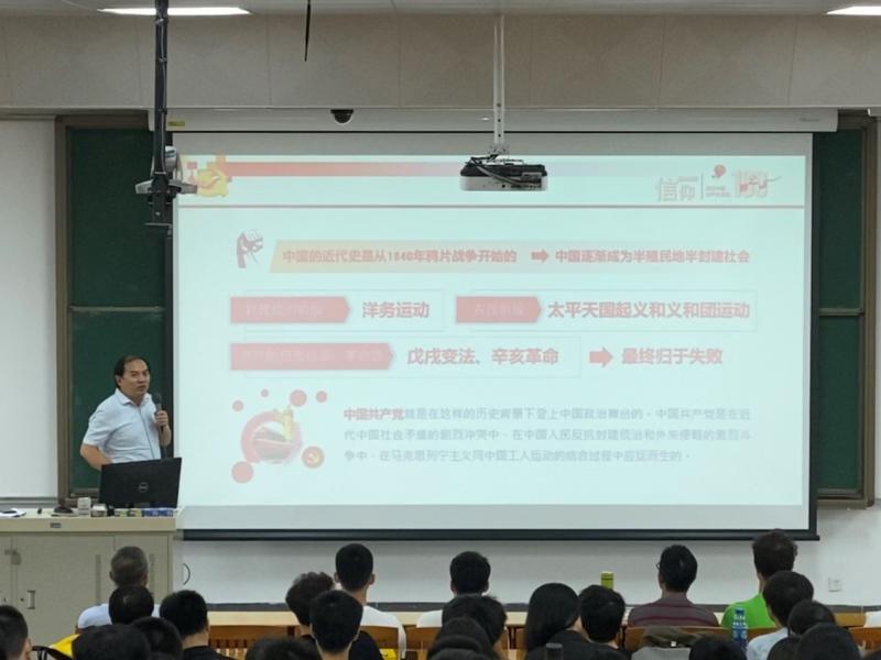 此后,学院党委书记马啸教授分别从“救国”“兴国”“富国”“强国”四部分,与同学们一起回顾了从中国共产党诞生、带领中国人民实现翻身解放,到推进中国特色社会主义新时代的光辉事迹。马书记强调,中国共产党自成立以来始终坚持以人民为中心的思想,树立了为中国人民谋幸福、为中华民族谋复兴的初心和使命,正是这样的宗旨引领着我党克服苦难、拨乱反正,带领中国人民昂首迈入无限接近实现中华民族复兴的新时代。马书记希望在座的同学们作为新时代青年要建立正确的唯物史观,以正确的立场、观点、方法看待党的历史,准确把握党的历史发展的主题和主线、主流和本质,正确看待党在前进道路上经历的失误和曲折,并且要旗帜鲜明反对历史虚无主义,树立远大理想信念,从党的非凡历程中感悟马克思主义的真理力量和实践力量,坚定对马克思主义的信仰,增强对社会主义、共产主义的信念,对实现民族伟大复兴的信心,坚持爱党、爱国、爱社会主义高度统一,为全面建设社会主义现代化国家、实现中华民族伟大复兴中国梦贡献青春力量。