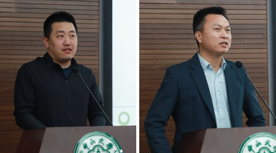 优秀企业代表马朔(左)、莫俊彬(右)作“协同育人”专题发言