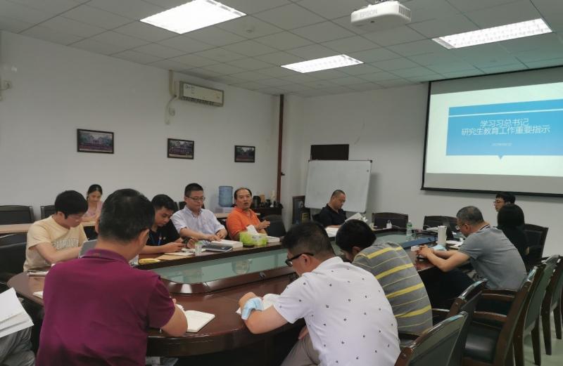 随后学院副院长吴维刚教授带领中心组成员学习习近平总书记关于研究生教育工作的重要指示和全国研究生教育会议精神。结合我院研究生教育工作实际,吴维刚教授指出,我们要深入学习贯彻习近平总书记关于研究生教育工作的重要指示,坚持“四为”方针,坚持“三个面向”,以问题为导向,对照党和国家、教育部、学校的要求,深化研究生教育改革,进一步提高我院研究生教育工作水平和质量。