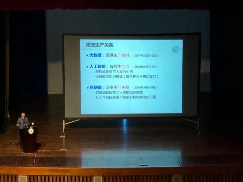 2020年1月12日,我院郑子彬教授在广州校区南校园梁銶琚堂,为全校管理人员作《区块链技术发展现状与趋势》专题报告。