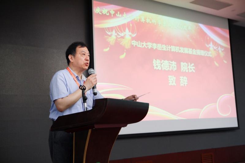 钱德沛院长代表李岳生计算机发展基金管理委员会进行发言。他首先代表全院师生向大家的到来表示热烈的欢迎和衷心的感谢,接着,他介绍了学院从1979年成立计算机科学系以来的发展情况。他认为,学院的发展,既得益于原计算机学科深厚的沉淀,更与广大校友的关心支持和无私帮助密不可分。他表示学院也一定会管好、用好计算机发展基金,为学院教育事业的发展做出更大贡献。