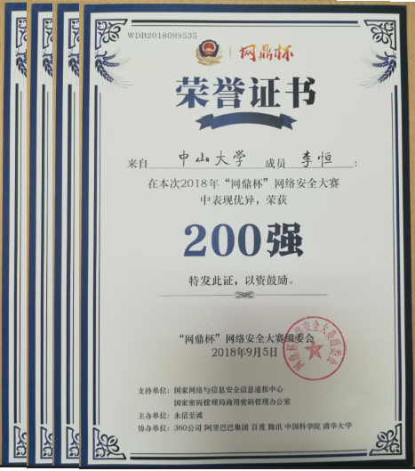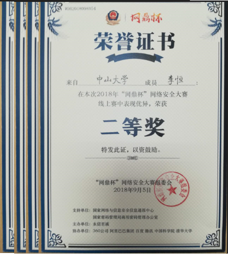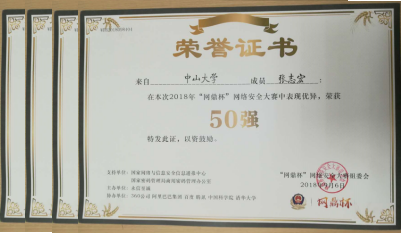 日前,首届“网鼎杯”网络安全大赛在北京国家会议中心落下帷幕,我院学子张志宏、李恒、毛海销、张丰露组成Wat3rDrop战队,在指导老师王盛邦的带领下在总决赛中获得全国50强荣誉。