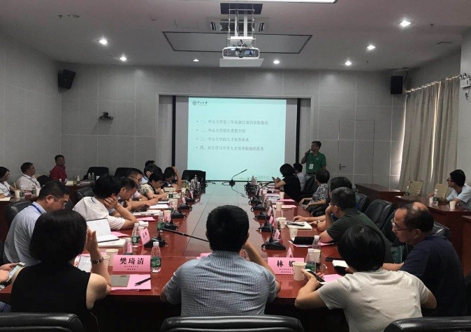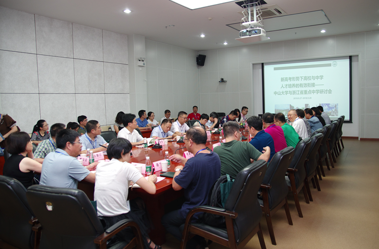 研讨会上,招生办公室刘泽炀主任介绍了我校近三年在浙江省的录取情况、招生类型和人才培养体系以及对大学与中学人才培养衔接的思考;冯双主任以丰富的史料深情地介绍了中大的校史;肖仕副处长介绍了我校近期的发展规划;芶祯成副处长介绍了我校的科研工作情况。