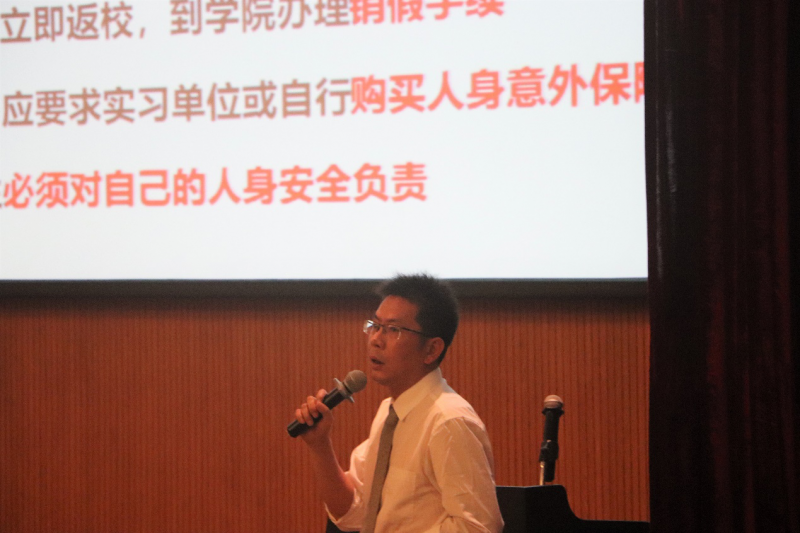 随后,党委副书记陈征宇博士就“研究生培养要求及管理规定”这一专题进行解读,在具体案例与数据统计的基础上,对毕业条件、学校规章制度及学院管理规定进行了详细介绍。他希望同学们能转换角色,铭记身份,扣好研究生生活的第一颗扣子。