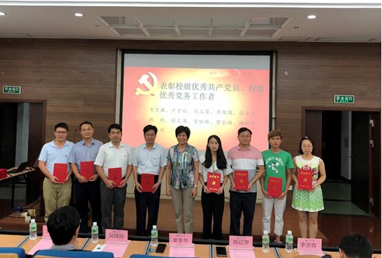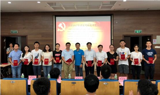 大会在庄严的国歌声中开始。会上,新党员进行入党宣誓,老党员重温了入党誓词。会议隆重表彰了10名校级优秀共产党员、1名校级优秀党务工作者、2个校级先进党支部、30名院级优秀共产党员、6个院级先进党支部以及2017年评议考核优秀的14个党支部,与会党委委员为优秀党员、先进党支部颁发了荣誉证书。