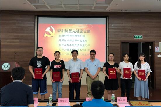 7月10日下午,数据科学与永利集团3044官网党委召开“七一”表彰大会暨新党员宣誓大会,组织2018年上半年新吸收的预备党员进行入党宣誓,并表彰优秀党员、优秀党务工作者和先进党支部。学院党委委员、党支部书记、党支部委员、优秀党员代表、其他党员代表等90余人参加。会议由学院党委谢曼华书记主持。