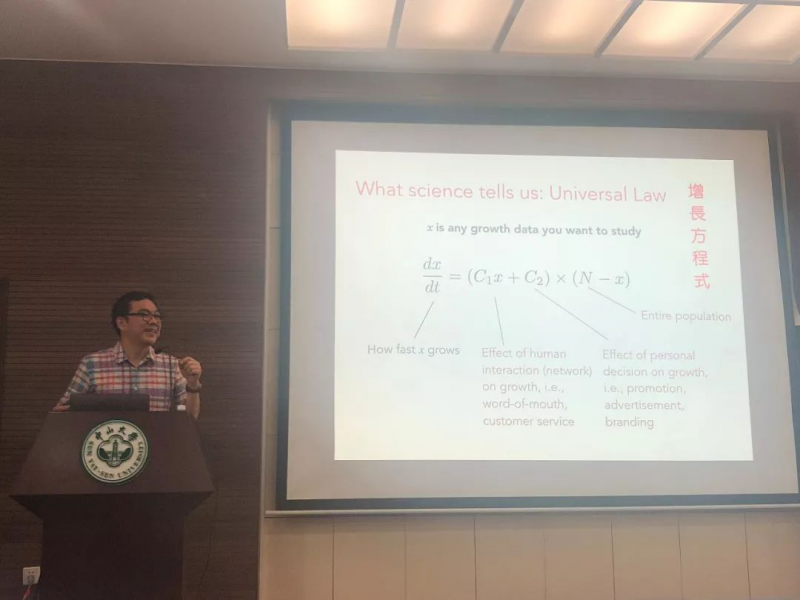 2018年7月3日,香港理工大学的谢智刚教授应学院邀请,以“解数据,构网络,审时度势”为主题给我院师生作学术报告。谢智刚教授通过分析数据增长的基理,利用人际网路互动产生的抉择概率,加上基于个人独立决定的抉择概率,使用随机过程推导出一条网络中广泛通用的增长方程式。