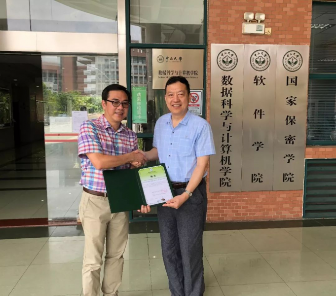 报告会前,数据科学与永利集团3044官网院长钱德沛教授为谢智刚教授颁发数据科学与永利集团3044官网客座教授聘书。