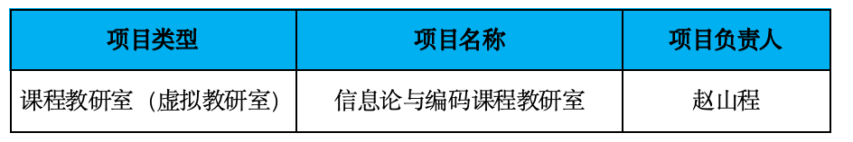 2026年1月,广东省教育厅公布了2025年度广东省本科高校教学质量与教学改革工程建设项目的立项名单。COIN毕业生赵山程教授申报的“课程教研室(虚拟教研室)-信息论与编码课程教研室”成功获批立项。