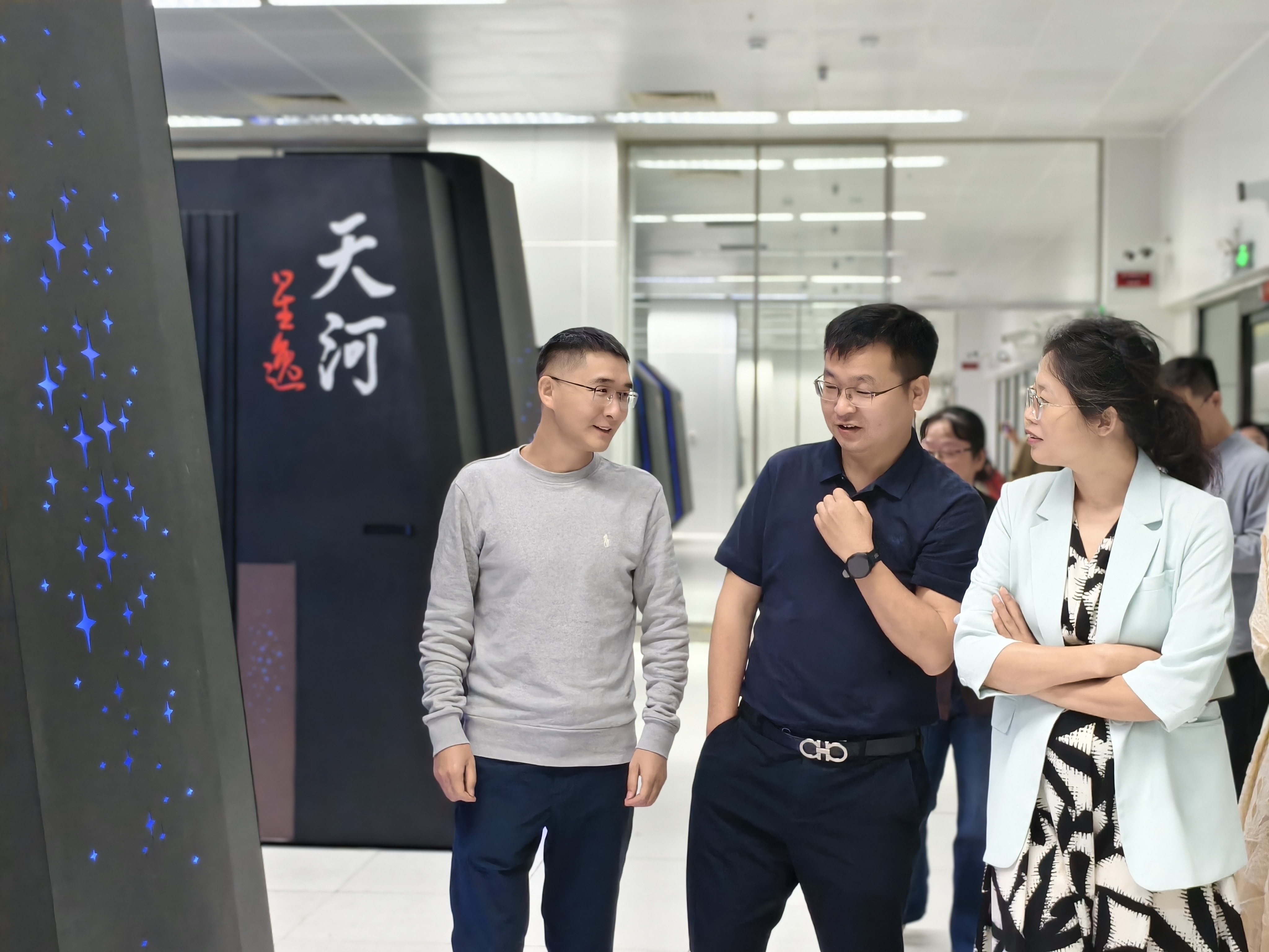 座谈结束后,实验室成员、国家超级计算广州中心副主任陈志广教授带领调研团参观了天河星逸超级计算机系统,介绍了系统算力水平与应用成果。
