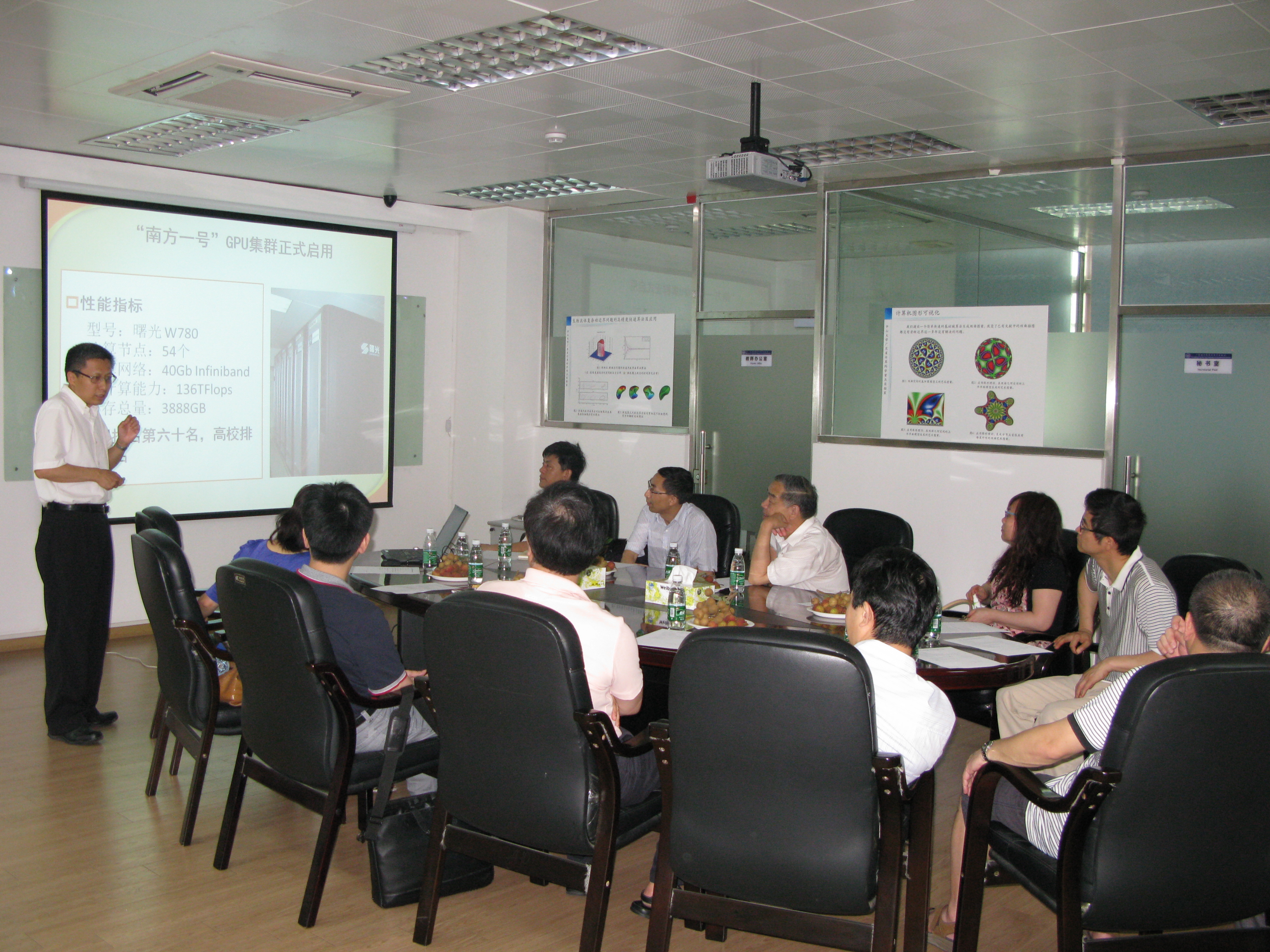 中科院石钟慈院士主持会议。实验室主任许跃生教授向学术委员会汇报了实验室2011年度工作情况。汇报了实验室一年来的两件大事:一是“南方一号”GPU集群正式启用,并服务于包括生命科学学院、海洋学院、物理科学与工程技术学院、化学与化学工程学院等在内的多个科研单位和多个学科;二是全面参与广州超级计算中心的论证、项目申报、建设。此外,还介绍了包括高性能计算、医学图像处理、信号处理、计算系统生物学、马氏决策过程等方向的研究进展,以及学术交流、人才培养、开放基金等情况。实验室下一年度工作重点将继续参与广州超级计算中心的建设,继续推进医学图像处理研究方向的S3医学图像处理研究中心的建设,该研究中心目前正在筹建,为实验室与美国雪城大学、纽约州立大学上州医科大学联合建立的国际研究中心。