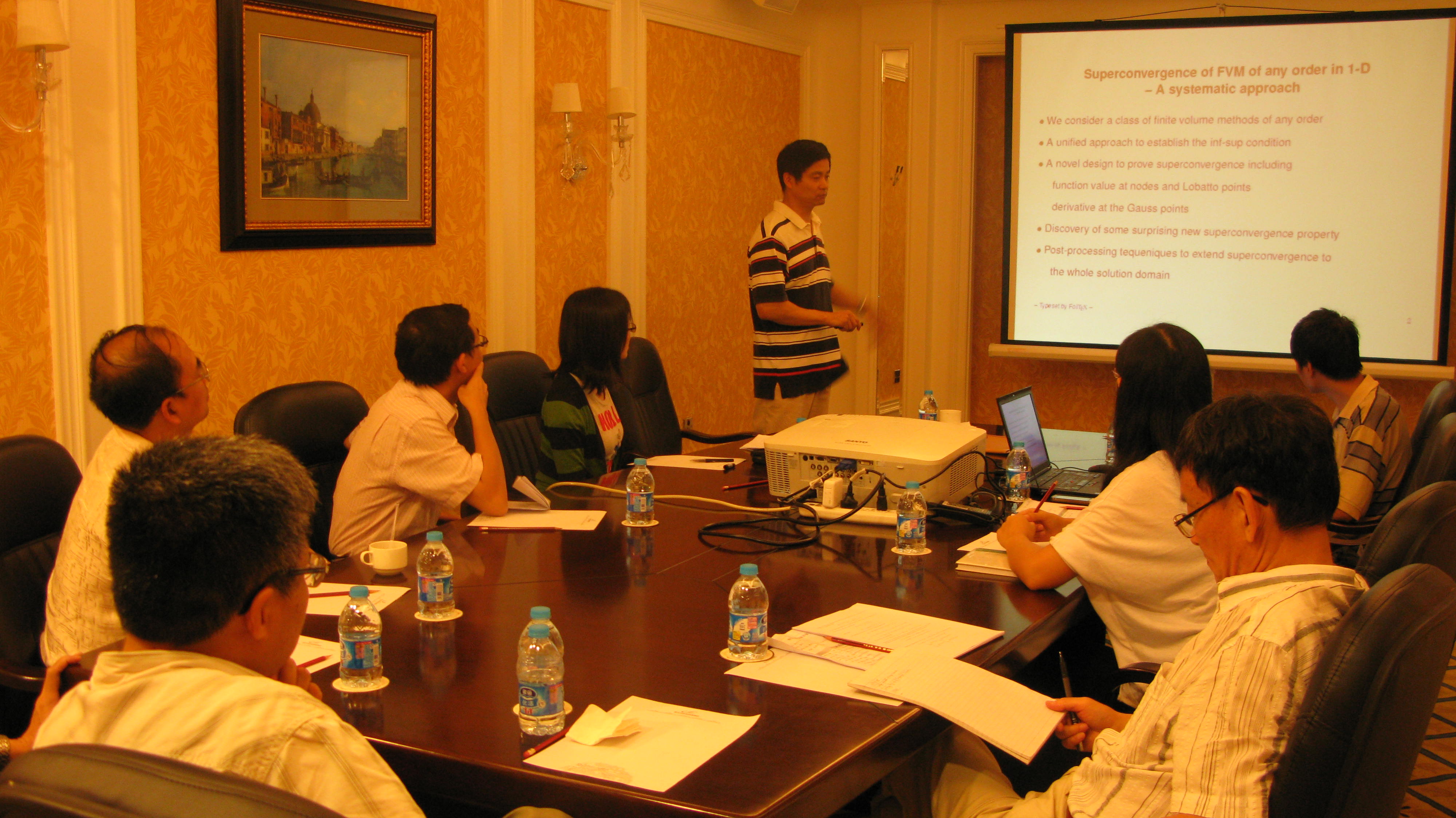有限体积法研讨会于2012年8月2-4日在韶关成功举行。本次会议邀请了加拿大曼尼托巴大学郭本琦教授,吉林大学李永海教授参加,张智民教授、李永海教授等5名师生分别作了精彩的报告,介绍了各自在有限体积法研究上的新进展。
