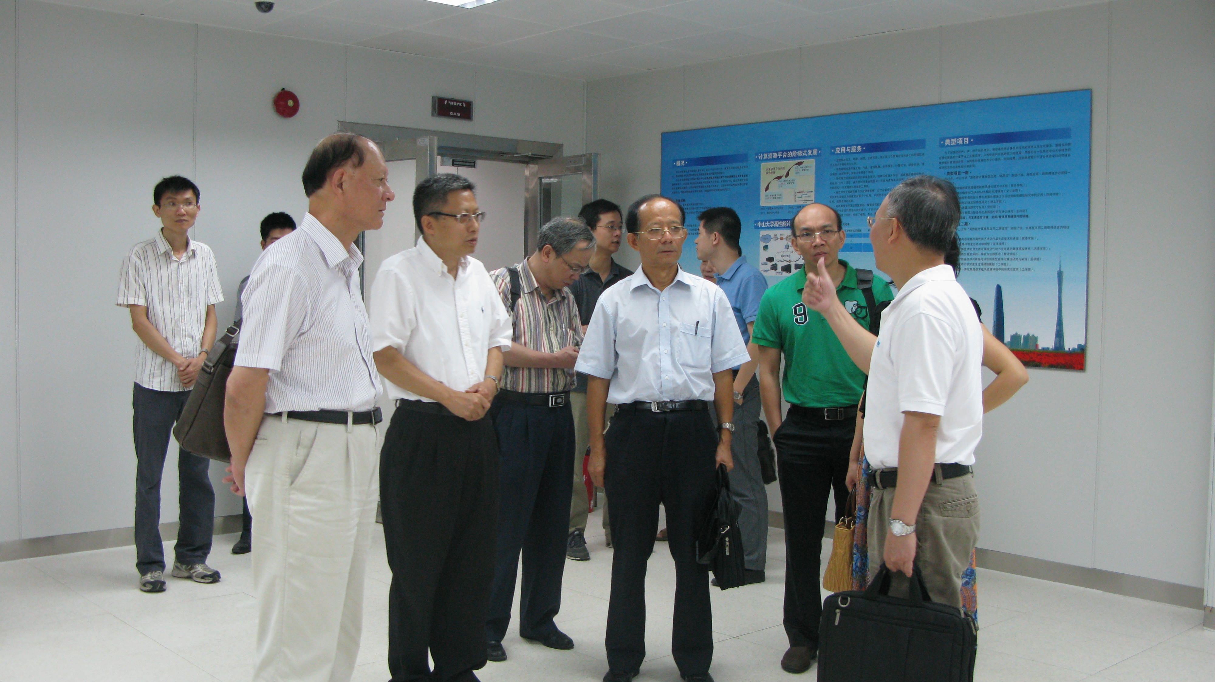2012年9月24日,广东省科技厅领导以及专家一行5人在402永利集团官网科技处夏亮辉处长等陪同下,对广东省计算科学重点实验室的场地和“南方一号”GPU集群进行了现场视察,并认真听取了实验室主任许跃生教授对实验室建设和科研工作进展所作的汇报。