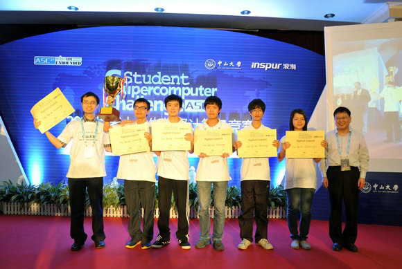 4月25日,世界大学生超级计算机竞赛ASC14总决赛在我校落下帷幕。我校参赛队在国际通行的Linpack基准测试中,在3000W功耗限制下,以每秒9.272万亿次的运算速度创造新的世界纪录,摘得最高计算性能奖,并获得本届竞赛一等奖。