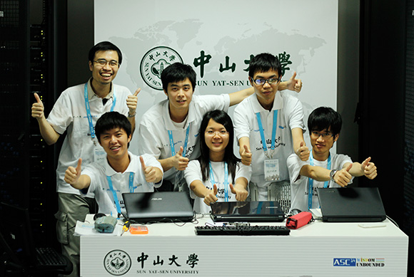 本次决赛的16所高校从82所来自世界各地的高校中角逐而出。我校代表队的教练团由数学与计算科学学院许跃生教授科研团队和网络与信息技术中心共同组成,张永东、叶纬材、关伟豪、范筑军、余伯俊等老师担当主要的指导工作,他们娴熟的技术指导和团队管理是中大参赛队强有力的支撑。参赛队员有软件学院陈照和甄羿、数计学院贺小雨、信科院陈炳炜以及环境学院梁畅等五位同学。他们对挑战计算极限的决心是参与世界比拼的最重要动力,他们的全身心投入、通力协作以及默契配合是我们追求成功的关键力量。此外,教练助理关文超、植美鹏同学以及林思扬老师提供了很多的技术支持。