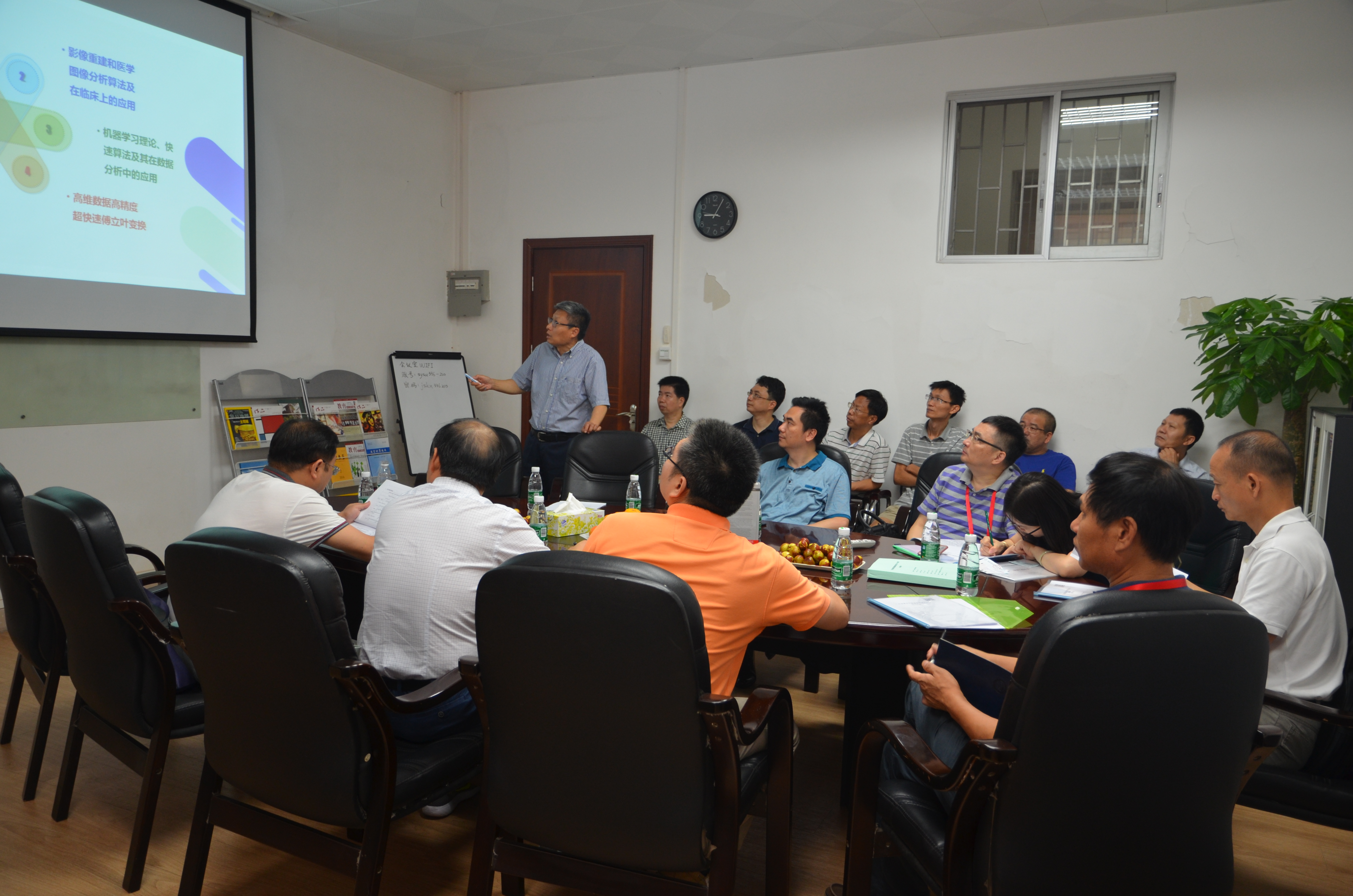 许跃生教授代表实验室欢迎省科技厅领导及专家组一行莅临考察,并向各位专家汇报了实验室2014-2015年间的工作与成果。汇报结束后,专家们与实验室成员进行了交流,随后由许跃生教授带领参观了办公场所。