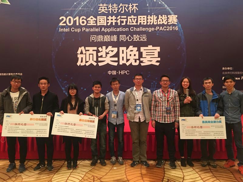 10月29日,“英特尔杯2016全国并行应用挑战赛(PAC2016)”颁奖仪式在西安举行。由实验室成员叶纬材博士指导的“FASTER THAN LIGHT”超算优化队获“并行优化铜奖”;陆遥教授指导的“半蓝天半白云”超算应用队获“最佳应用铜奖”;吴峻峰博士指导的“543”超算应用队获“最具商业潜力奖”。