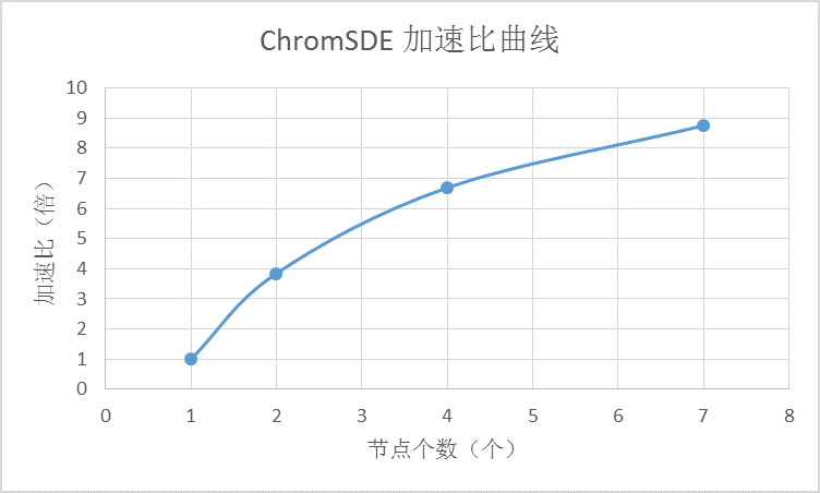 并行化后的ChromSDE在402永利集团官网的南方一号上进行了性能测试,得到以下测试结果: