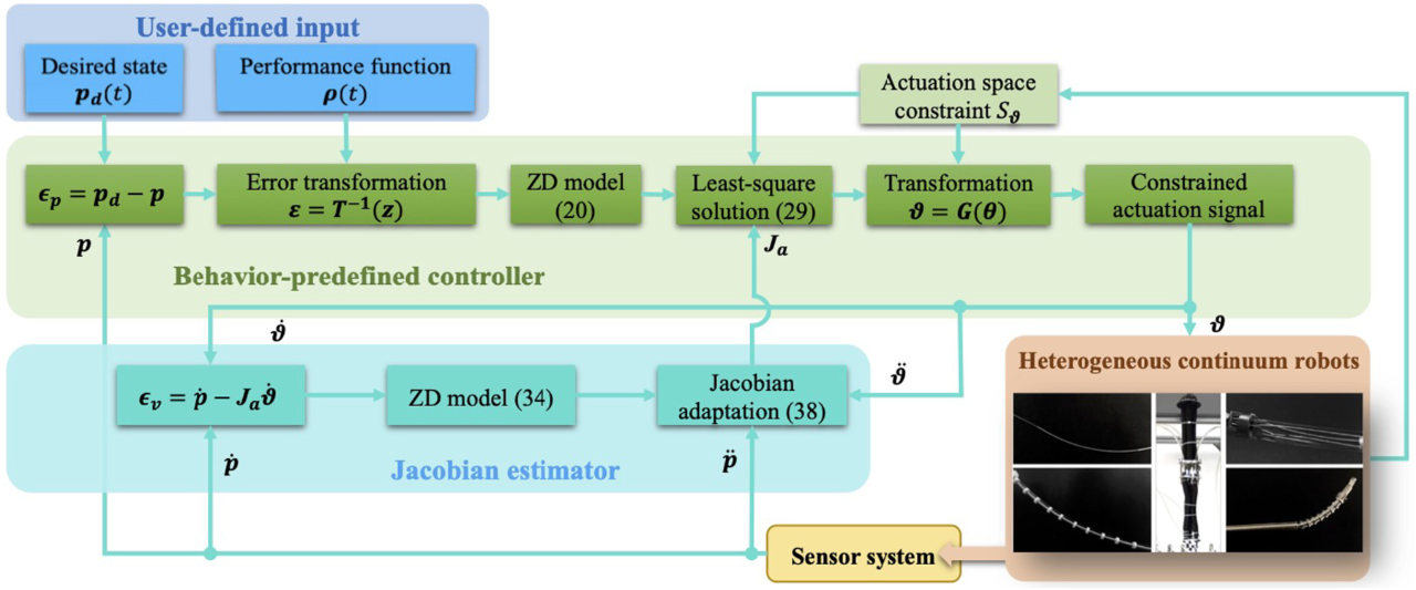 To achieve this goal, the team applied performance preset control (PPC) theory, which allows the user to specify the transient error convergence rate and boundaries. Given that existing PPC methods are mostly applicable to ideal conditions without external interference, and continuous robots are susceptible to deformation caused by external loads or environmental interactions, the team introduced the zeroing dynamics method and used sensor feedback to estimate model information to eliminate model uncertainty. The team used this method to initialize and adapt the robot's unknown Jacobian matrix to optimize motion control.
