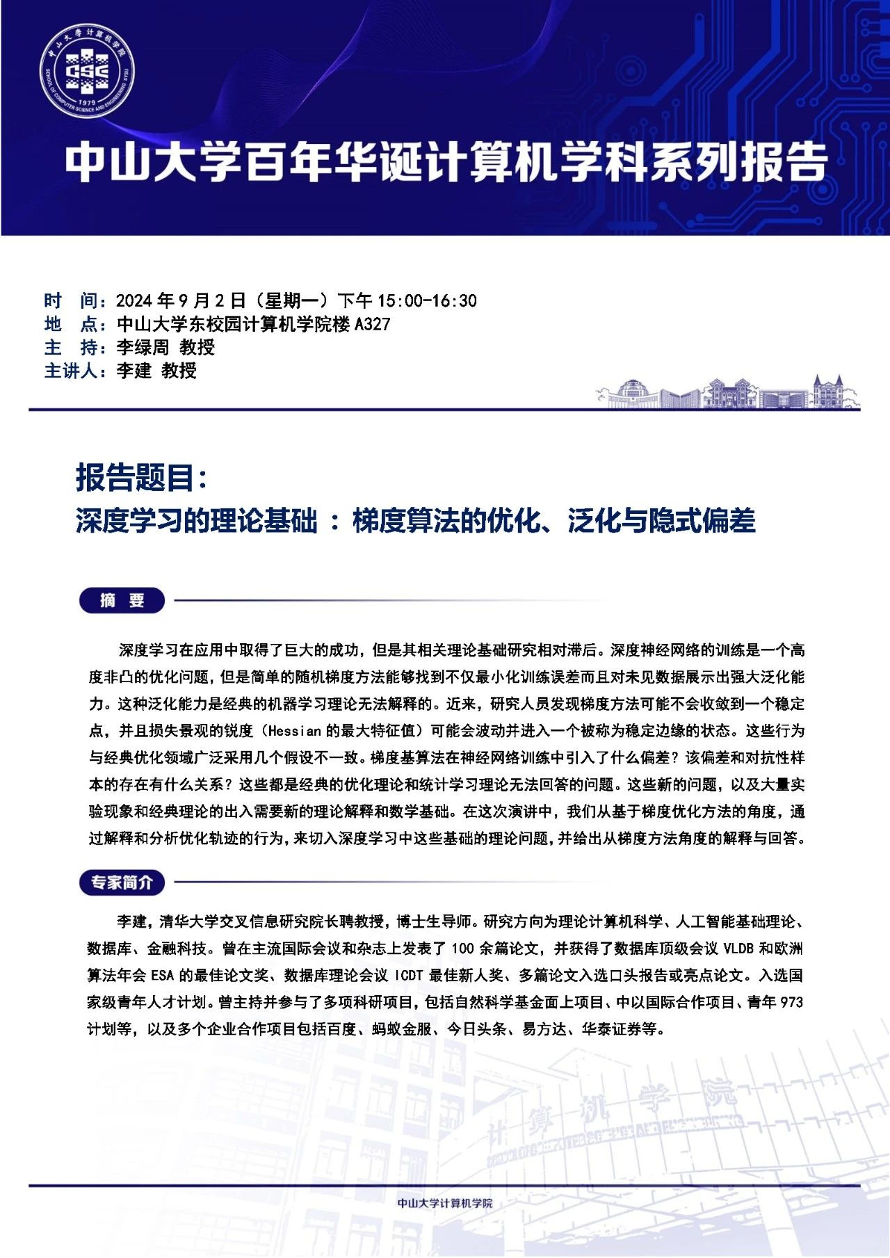 学术报告:深度学习的理论基础:梯度算法的优化、泛化与隐式偏差