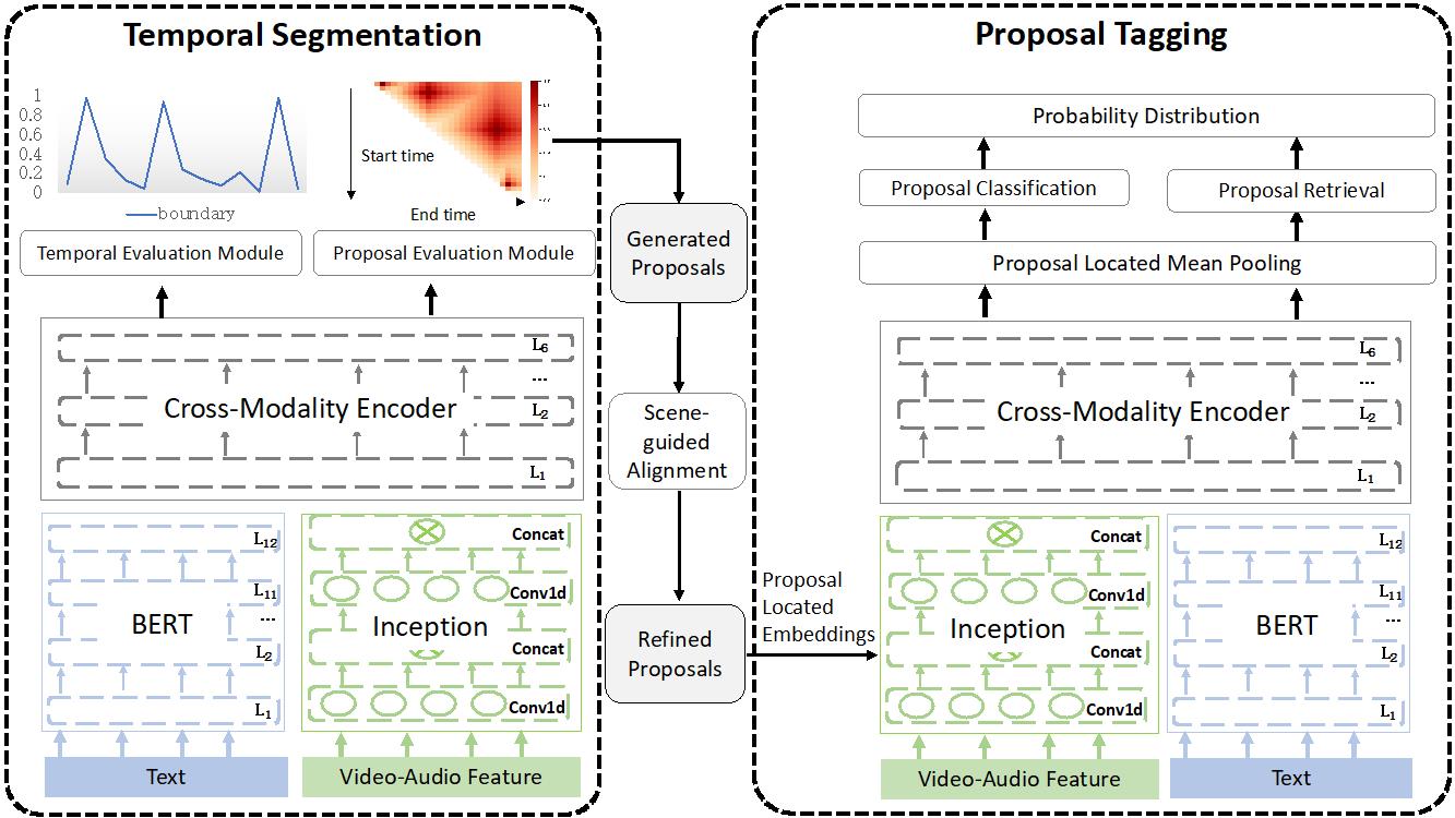 在此次比赛中,实验室学生郭达雅取得冠军的关键点主要包含两个方面。第一是利用视频广告多模态的信息,也就是视频-音频和字幕,并且提出了多模态编码器进行多模态特征的学习。第二是将任务分解成两个阶段,也就是时序分割和提名标注,并且在每个阶段都提出两种任务进行综合评估。最终,该队伍不但在初复赛中一路保持领先,更是获得答辩满分的成绩和决赛冠军。